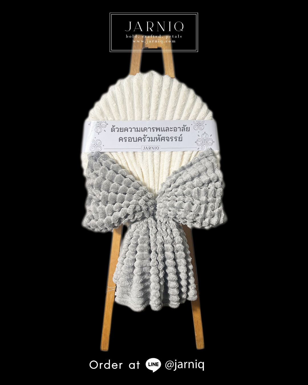 ไม่ว่าคุณจะต้องการเพียง 1 ชิ้นเพื่อบุคคลอันเป็นที่รัก หรือต้องการปรึกษาการ สั่งพวงหรีดจำนวนมาก สำหรับองค์กร ทีมงาน Jarniq พร้อมดูแลคุณด้วยหัวใจและมาตรฐานความเป็นเลิศครับ